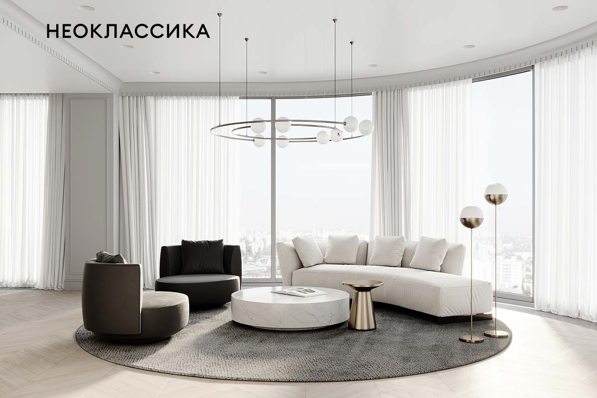 Есть выбор из трех вариантов отделки: неоклассика, совмещающая традиционные и современные элементы, природная и натуральная неофактура либо неодеко, сочетающая тактильные поверхности и редкие виды мрамора.